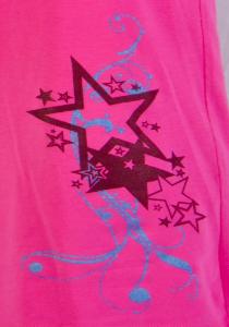 Poly viscose 65/35, 30 single, 3.7 ounce fabric. Side-seamed. Merrowed bottom hem. Shirring at racerback seam. Relaxed, drapey fit. (Athletic Heather is 52% poly/48% viscose. Marble Colors are 91% poly/9% combed and ring-spun cotton, 40 single, 3.5 ounce fabric.)