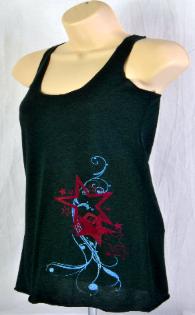 50% polyester/25% combed ring-spun cotton/25% rayon, 32 singles, 4.3 ounce tri-blend tank. Extremely soft, comfortable and stretchy. Fabric laundered for reduced shrinkage.